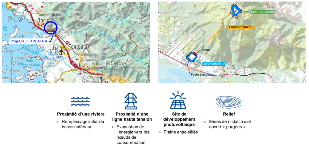 En 2015, Enercal a identifié plus de 50 sites pouvant accueillir une STEP avant de trouver celui avec les caractéristiques optimales :